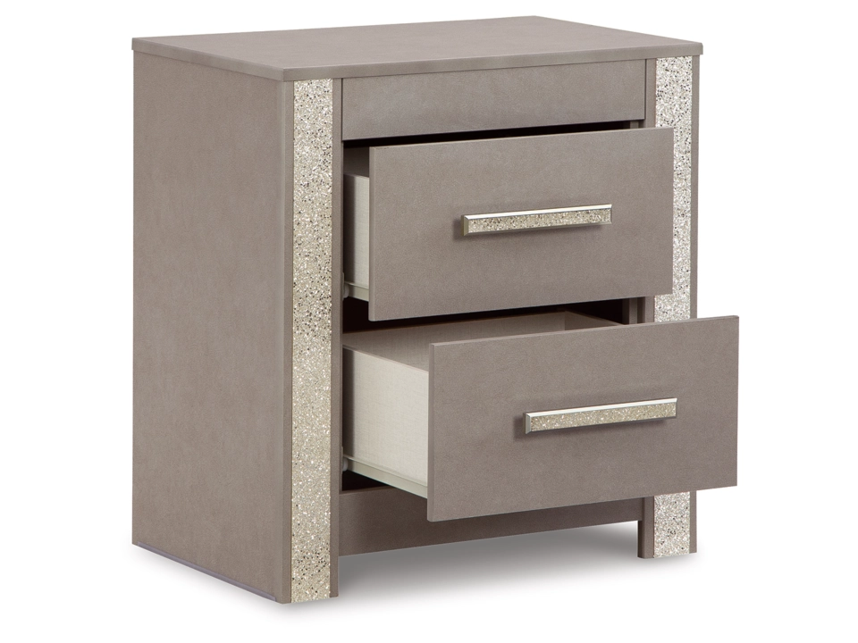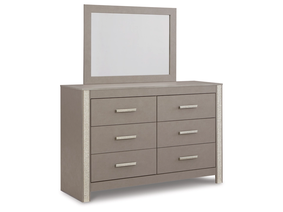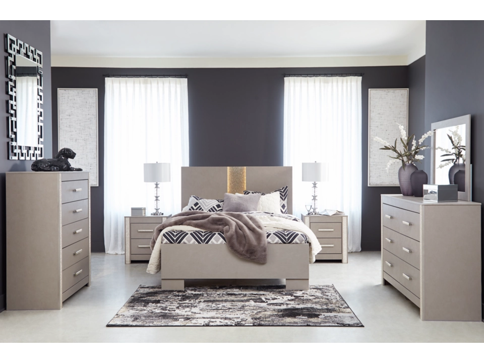 Love sleek and bold contemporary style? Drink in the beauty of the Surancha bedroom package. Its eye-catching details include glam glitter accents and the look of leather grain with a subtle gray finish. Combined with the streamlined aesthetic, this set is a simply stunning way to achieve the bedroom of your dreams.