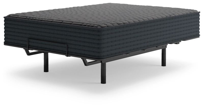 Comfort level: firmHigh-density charcoal-infused gel memory foamHigh-density support foamBase support foam720 power packed 15-gauge wrapped coilsAshley Edge "steel encased"; 2 perimeter rows of 13-gauge wrapped coils for edge support4-way stretch coverBed bug encasement; luxury nano stain treated stretch cover; concealed micro-teeth zipper with patented zip tie closureLuxury pillow pocket technologyAdjustable base compatible10-year non-prorated warrantyNote: Purchasing mattress and foundation from two different brands may void warranty; check warranty for detailsFoundation/box spring available, sold separately