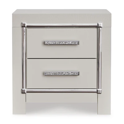 Bright, bold luxury. This bedroom package dazzles with its attention to detail. Your love of glamorous style is reflected in its all-over faux gator in a metallic finish, exquisitely paired with faceted chrome-tone details. With its opulent approach to bedroom style, this set inspires you to live luxuriously every day.